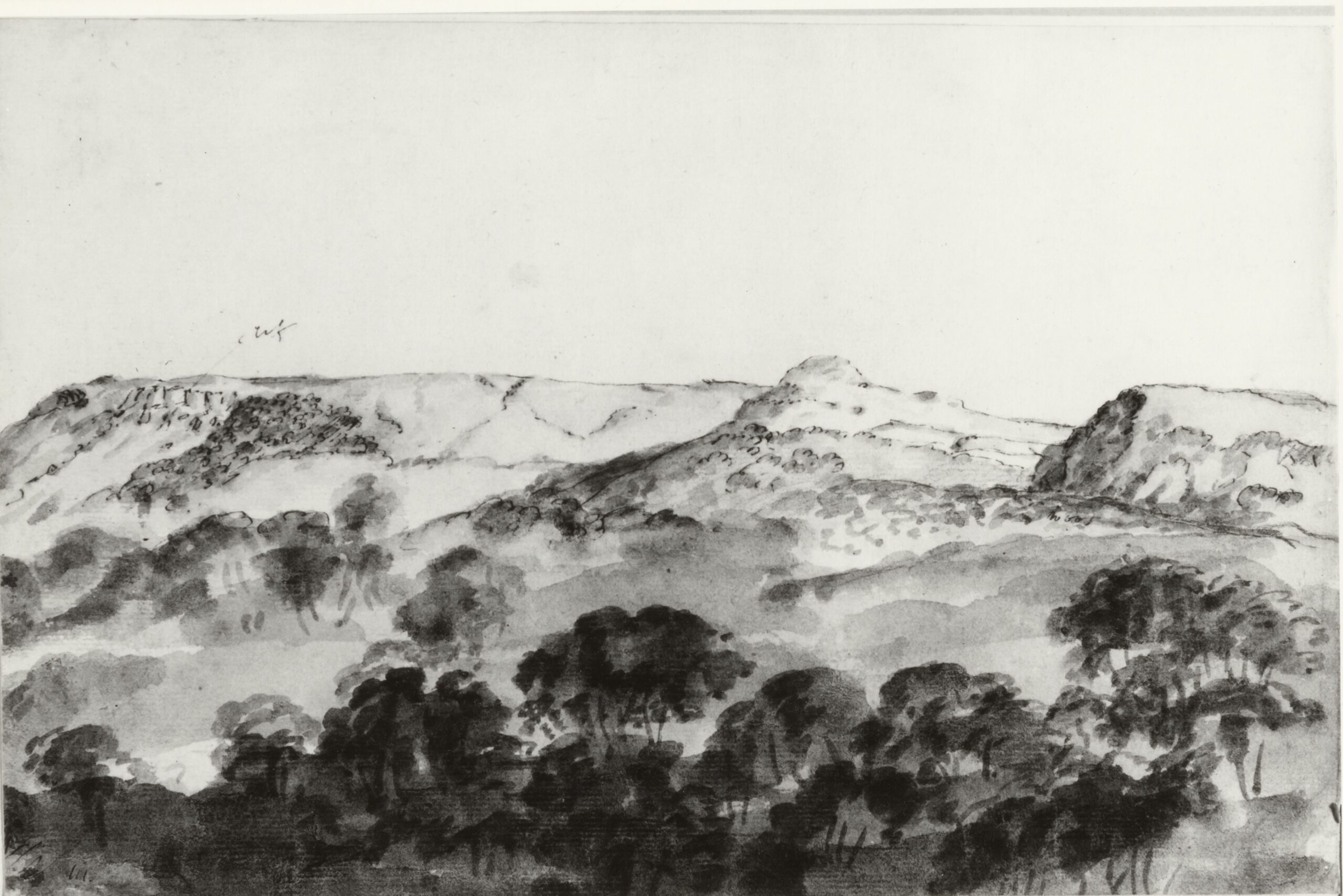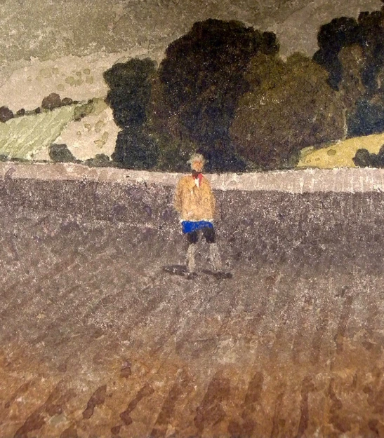 Three solitary figures in a landscape